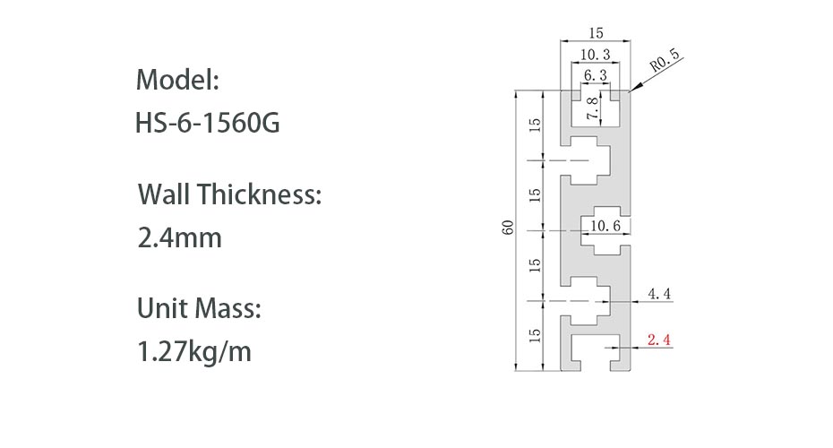 The 1560G series aluminum profile is a "load-bearing" staple in industrial framing applications. Compared to smaller profiles, its 60mm wide face features a multi-slot structure, significantly enhancing structural rigidity and load-bearing capacity. It is commonly used for constructing equipment bases, workstation frames, and heavy-duty safety guards. It provides stable structural support for large-scale equipment while maintaining the advantage of easy installation.