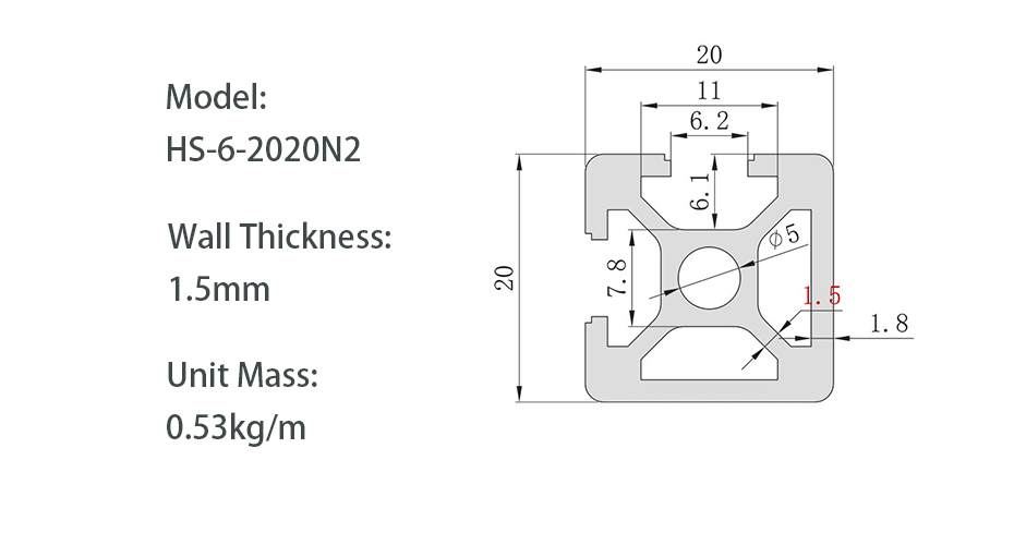 | Cross-sectional Dimensions | 20mm × 20mm | |