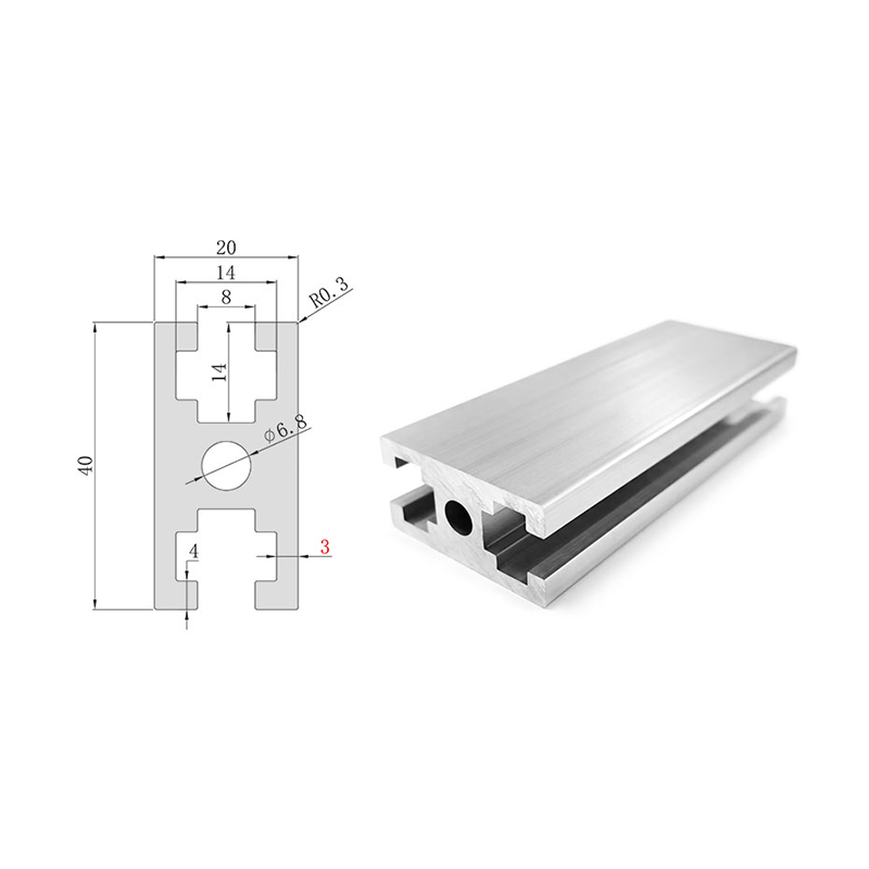 The square slot 2040 aluminum profile is a standout product in the modular aluminum profile market, belonging to the square slot system. The body is made of 6063-T5 aluminum alloy with anodized surface treatment, with a unit weight of approximately 1.43 kg/m and a wall thickness of 4mm. The 40mm face features a smooth slot-free design, mainly used for equipment door frames, enclosures, instrument racks, and display panels, making it a commonly used door frame profile in lightweight frame structures. Connections typically use M6 square nuts with 14mm opposite sides and high-strength socket head cap screws.