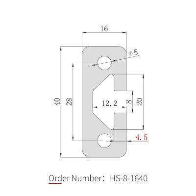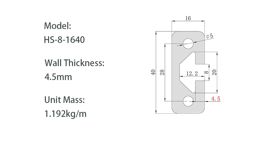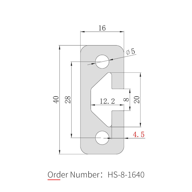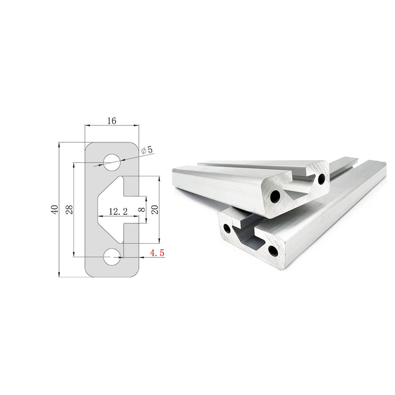 The 1640 aluminum profile is the dedicated guide rail model of the 16 series, with dimensions of 16×40mm and an 8mm slot width, compatible with 30 series M6 dedicated T-bolts and flange nuts. The body is made of 6063-T5 aluminum alloy with anodized surface treatment. Commonly used for guide rail channels, door frame fabrication, assembly line workbenches, mechanical equipment protective covers, and automated frame structures. 3030 or 4040 corner brackets can be used for reinforcement during connection.